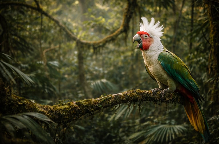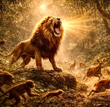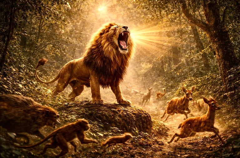 High from her tree-top lookout the monkey was the first to notice the noise. Her baby clung even closer to her. Elsewhere, other monkeys moved nervously as they, too, peered through the jungle canopy.