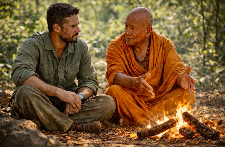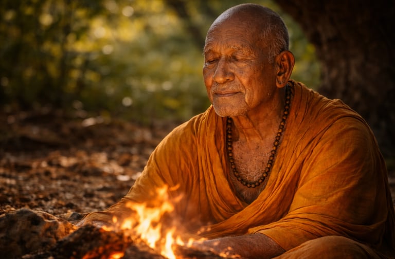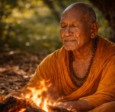 Surya pointed at the fire. Nick simply sat still, looking at the flames and following every word, knowing that Surya wasn’t really asking a question. Quickly the old monk began to speak again, this time with his eyes closed as if in a deep prayer.