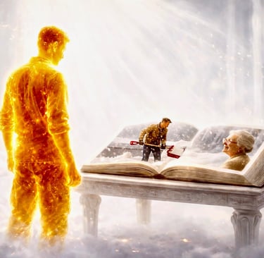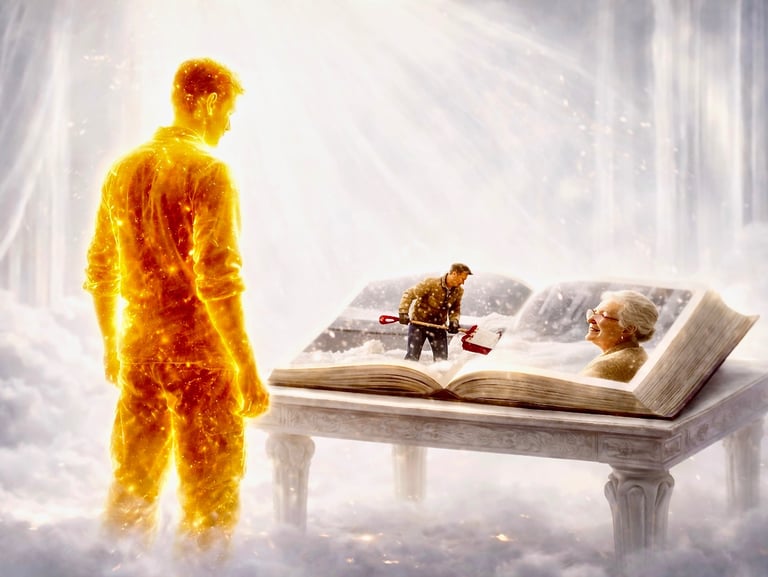 "Then in the next moment I was standing in a room that was made entirely out of white light. My father wanted me to look at the table and on it there was a large book and I was very curious because it contained my entire life, but now, instead of just an impression, I could clearly see my life before me. I especially saw moments when I was kind to people. I saw my grandmother who was looking at all the snow outside. It was very deep and I told her that I would shovel the snow off the porch roof so that it wouldn’t collapse and I could feel her love for me. Her feelings penetrated my very essence, and mine hers.
