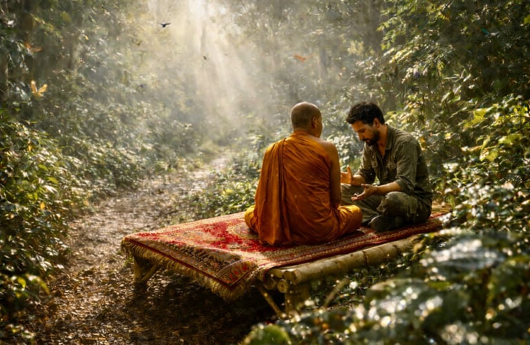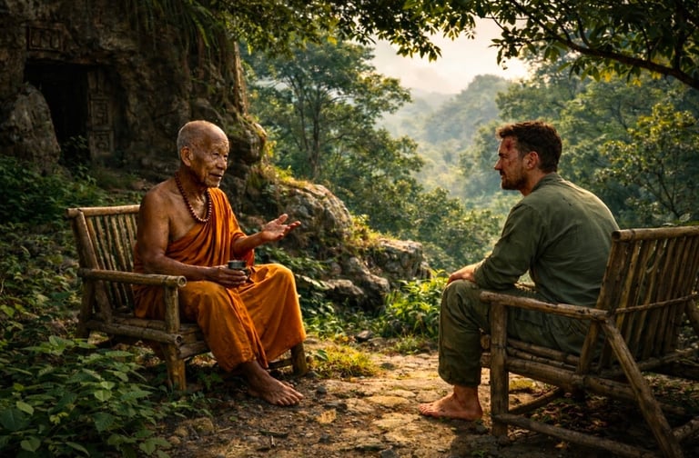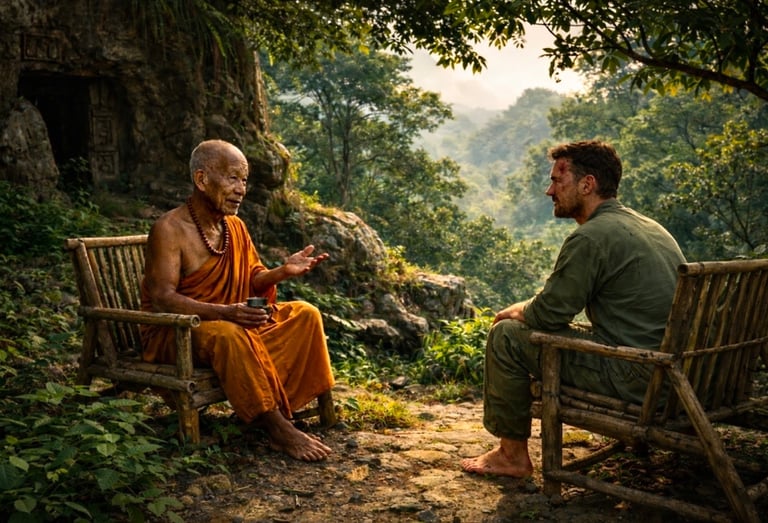 Nickolas was feeling enormous love for this old man whom fate had been so insistent that they meet. They lived in two, entirely different worlds; never really destined to meet. What were the chances of Nick ever meeting Surya, an elderly, English-speaking monk? No, Suryavarman was much more than that; a rare and beloved saint living in a remote cave in Laos.