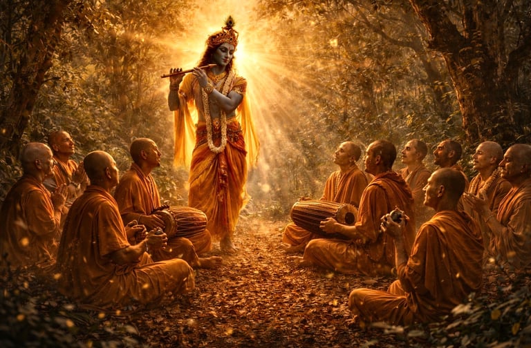 “In the Padma Purana, which is another Scripture we study, it mentions that the Name of Krishna is no less powerful than Krishna—Himself. It says that the Name of Krishna and the person, Krishna, are identical.