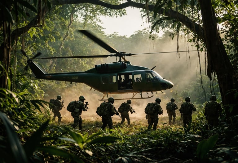 As for retired army officer Jimmy Sutton, this image of the future would have been unthinkable years ago—totally unthinkable. But there were also the unmistakable connections between the past and the present that struck Sutton like a sledgehammer. First: the jungle; haunting memories of Cambodia, Laos and Vietnam. He'd been here before. His right shoulder still ached at times from the bullet that had hit him. "Probably," he thought, "shot by that soldier's father," who was just a few yards ahead of him. "Wouldn't that be one hell of an irony?"