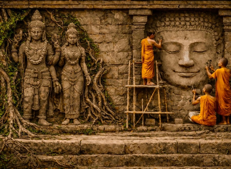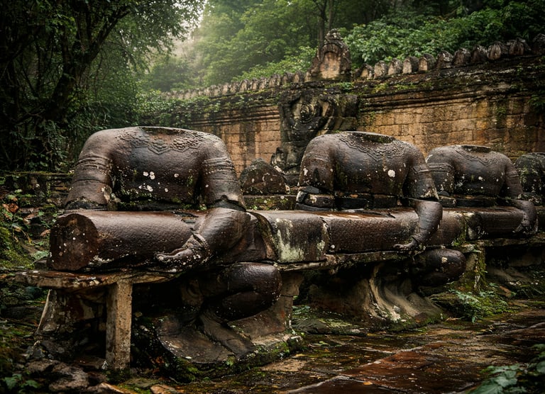 "Nickolas, one of the most remarkable sights in Angkor Wat are the many statues and carvings depicting the demons and demigods churning the Ocean of Milk. Father Mikalson was very curious about this.