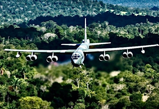 So this explains the reason for the column of men slowly making their way forward—frightening the monkeys. However, with some luck they would find it. But it would take a lot of luck—even if what they were looking for was almost as big as a football field. That's just about the size of a B-52.