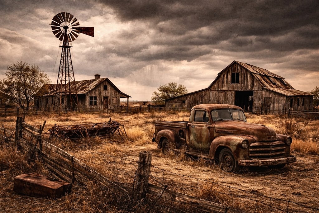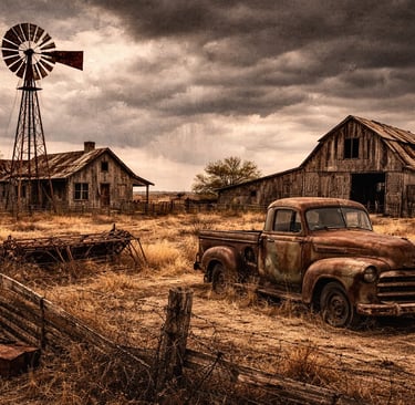 From Fredericksburg their car seemed to be headed on a straight line due west, but in fact, highway 87 also meanders its way north—slowing to a crawl at times through little towns such as Mason, Brady and Eden. After Eden, the last 45 minutes of their journey witnessed the end of the Texas Hill Country, sending their car down into a massive plain, filled mostly with mesquite trees, cotton fields, an occasional farm house and of course, cotton gins. Some of the farms were abandoned—remnants of long-forgotten homesteads from the Great Depression. As far as the eye can see the land is mostly flat and on this particular day, rain was in the forcast.