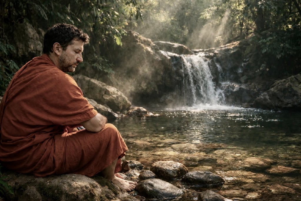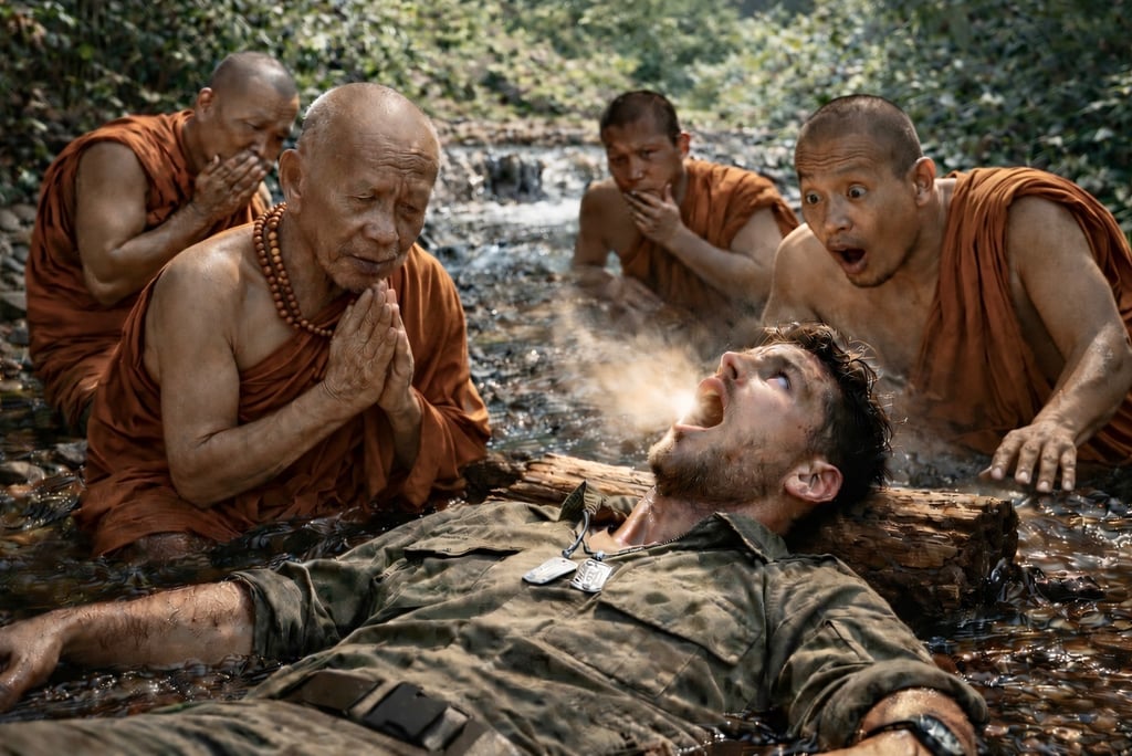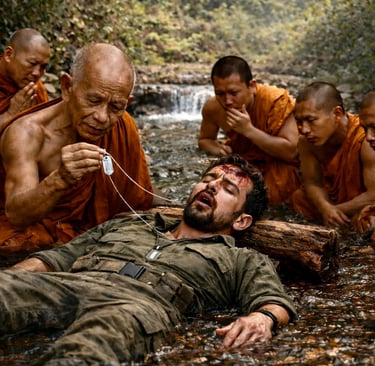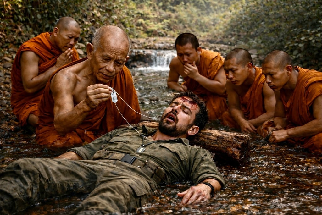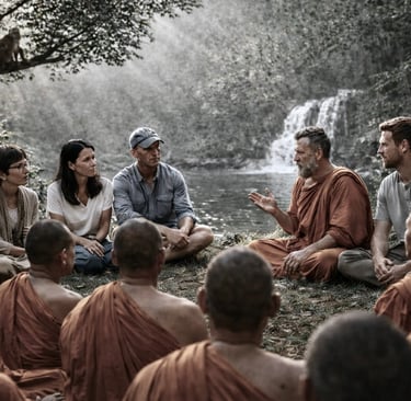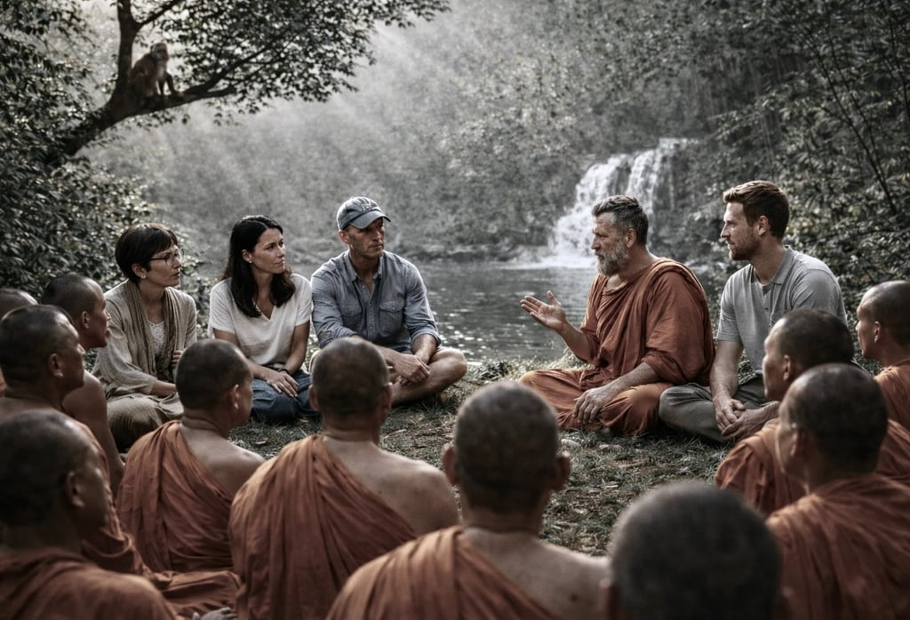 Seated to Nick’s right were Maria and Blake, with Major Sutton and Judy beside them. Rama sat immediately to Nick’s left, the two of them close together. The remaining monks formed a gentle semicircle around the group. Nick and Rama shared a quiet moment, their eyes bright, both men smiling as they looked out over everyone gathered before them.