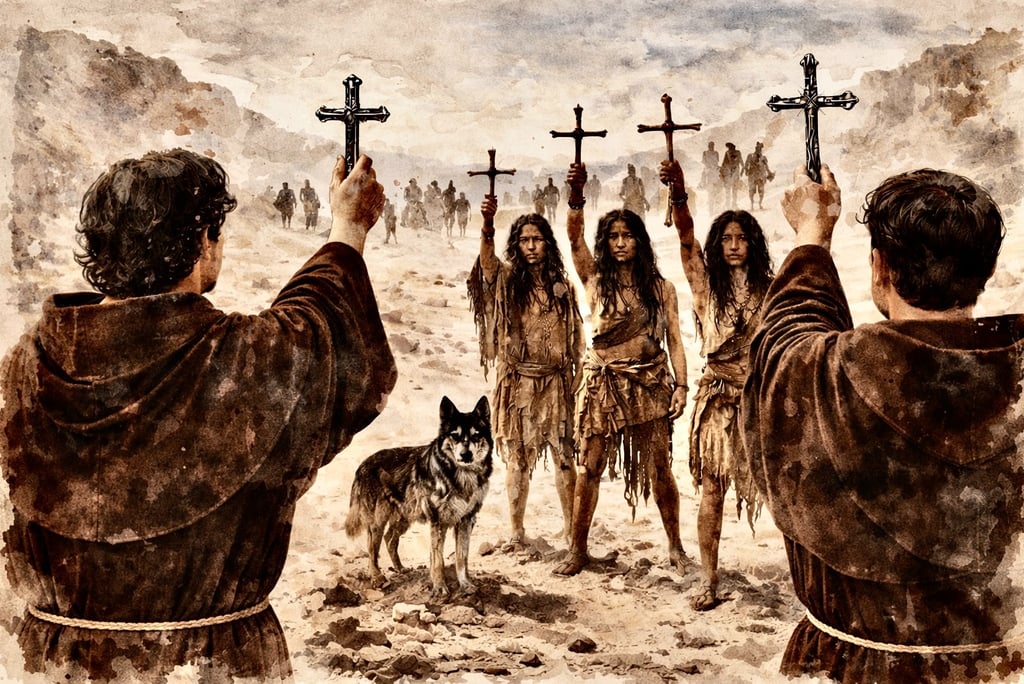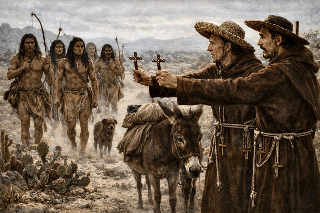 “Spanish missionaries would suddenly meet a band of Indians and following their time-honored custom, the priests would hold up their iron crosses for the Indians to see. But to their astonisment, the Indians quickly returned their gesture, pulling out their own crosses and holding them up for the priests to see. But these were not civilized Indians, mind you. Instead, they lived in areas that, as far as anyone knew, had been never touched by Spain or her priests.