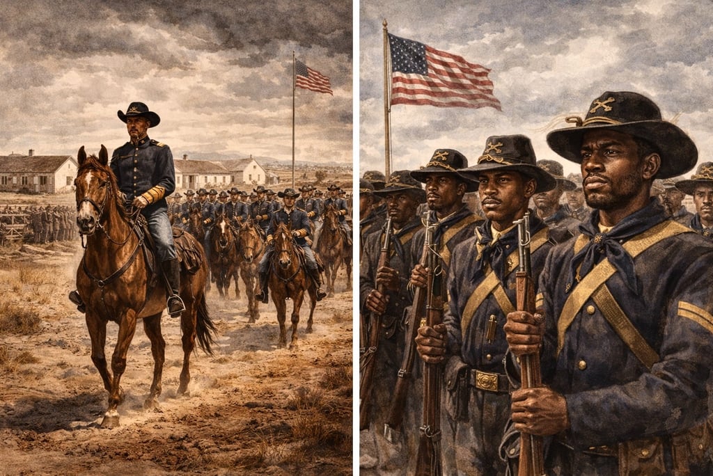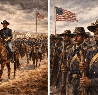 No, instead of going back that far in time, Father Mark started his history classes on far more familiar ground, telling his students that in 1867 the United States government established Fort Concho to protect the frontier from the savage Indians. A few years later a great army emerged from this same fort to once and for all eliminate this threat. The army was led by Col. R. S. Mackerzie and his famous 4th Calvary. By the end of their campaign and killing all their horses, the great Comanche Nation that had once ruled Texas was destroyed forever. For Father Mark, this was where his official lesson planner started. Next he would have mentioned how the fort became famous for its Black Cavalry, known as the Buffalo Soldiers.