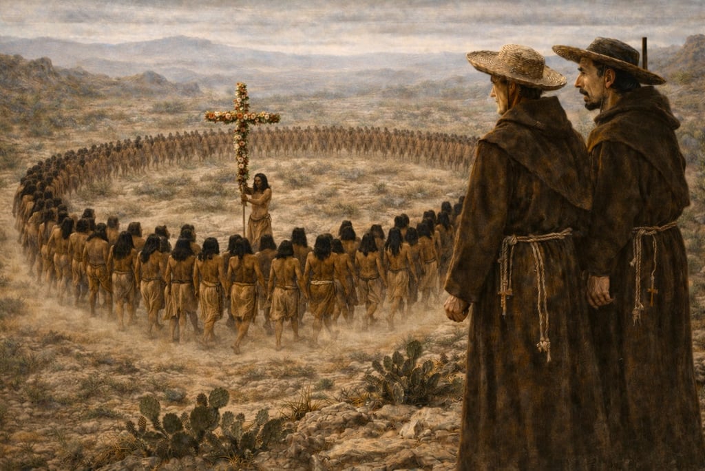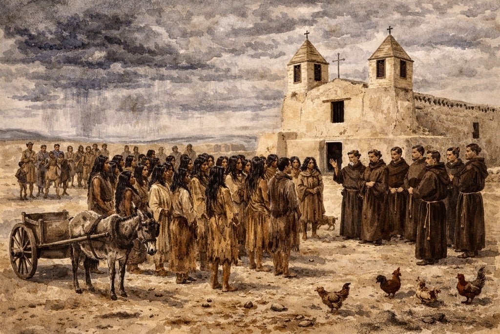 Although Father Mark was a history teacher, eighteen months ago he didn’t even know that the earliest history of San Angelo could be traced to the start of the 1600s. Finding that book buried under some boxes in the library suddenly changed everything for him—all centered around the eyewitness testimony of two Franciscan monks who reported to their superiors that in 1632, ten thousand Christianized Indians were gathered within the present day city limits of San Angelo asking to be baptized! That amazing piece of history he had discovered right before his trip to India and inwardly he was still reeling from it. "Why was that never taught to me?" Mark had asked himself that question at least a dozen times.