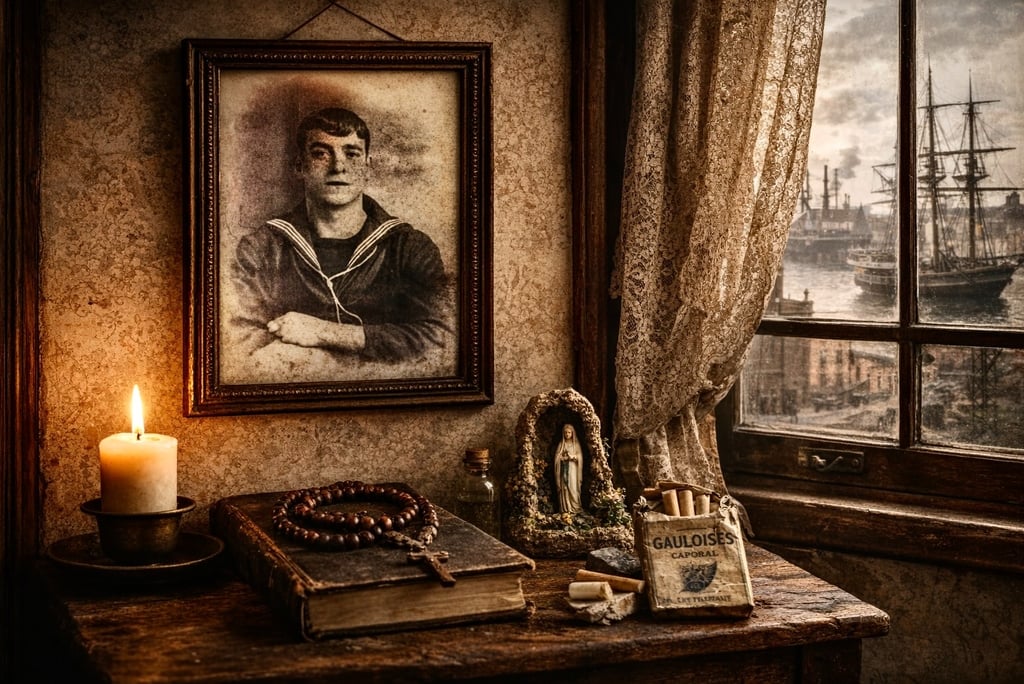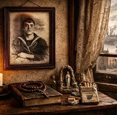 Thumbing through his Bible, Fr. Mark found the small picture that was tucked between two pages and handed it to his father.
