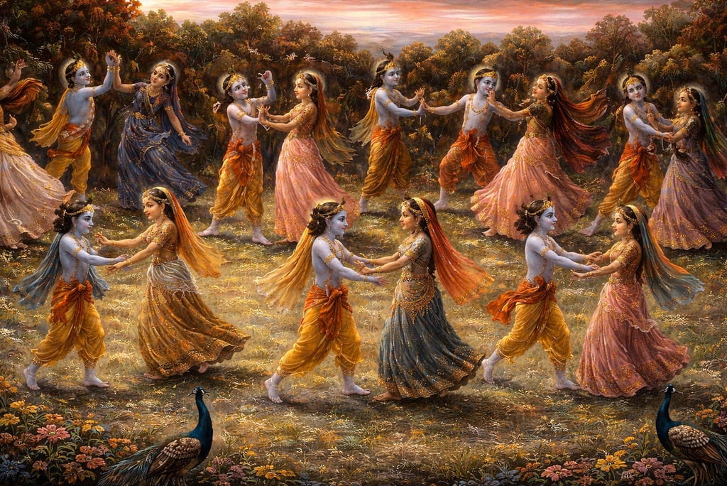 “To be honest, the stories of Sister Maria and the other Catholic Saints that we have been talking about are nectar to my ears—and so you can imagine my surprise when I discovered that there is a special forest in Vrindavan called Seva Kunj where 5000 years ago, Lord Krishna expanded Himself dozens of time to dance with all the young maidens—Radharani, being the topmost dancer. She is called a “gopi,” or a young village girl.