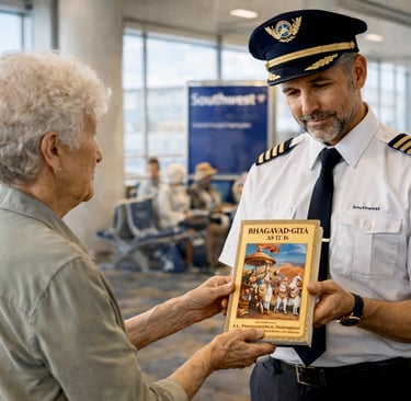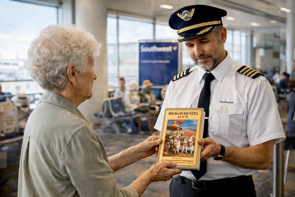 “Yes he is, Nick. Jai told me that Prabhupada’s mission was to present the real religion of India to the West and had ordered his disciples to print and distribute his books all over the world. Airports were the perfect place to meet people from all walks of life—many travelers with hours of waiting on their hands and a book to read not out of the question.