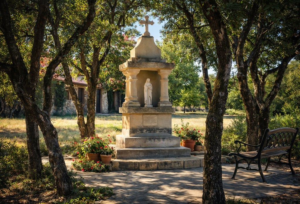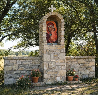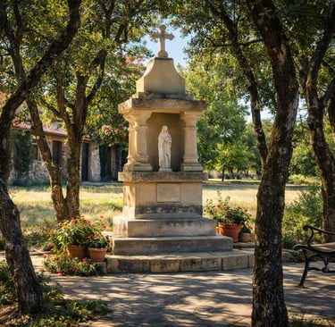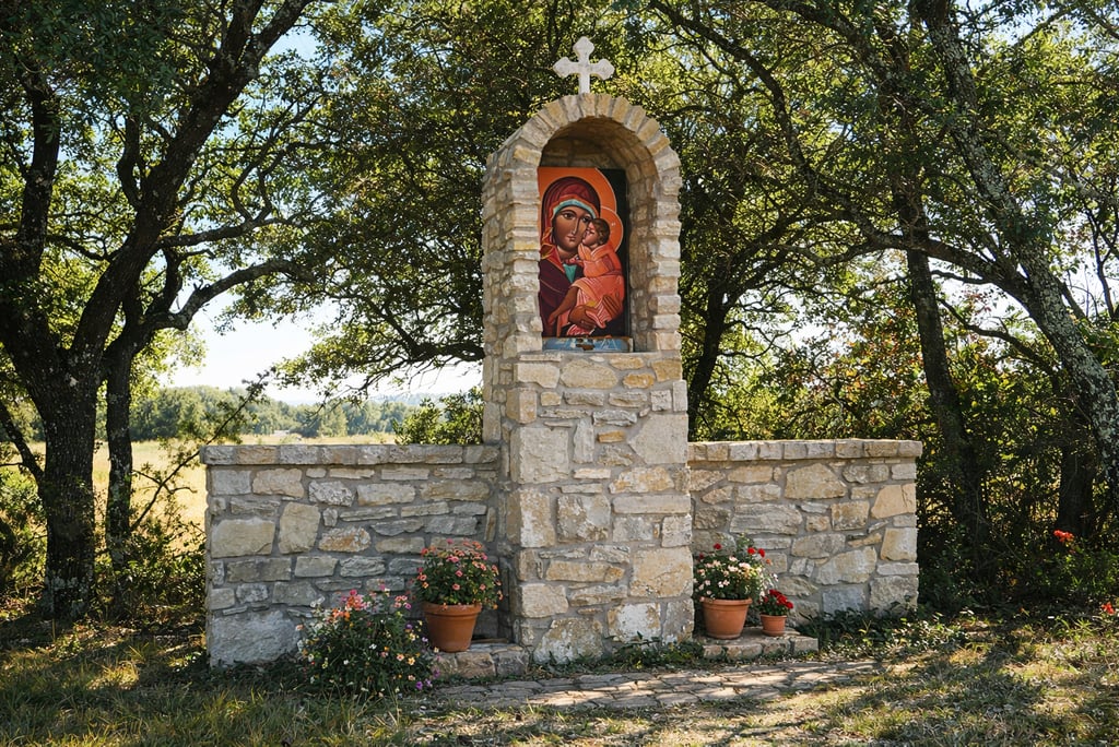 Just outside of Christoval, Mr. Penrose slowed down as he turned onto Allen Road that quickly delivered them to the Mount Carmel Hermitage. On their right a beautiful icon smiled down upon them.